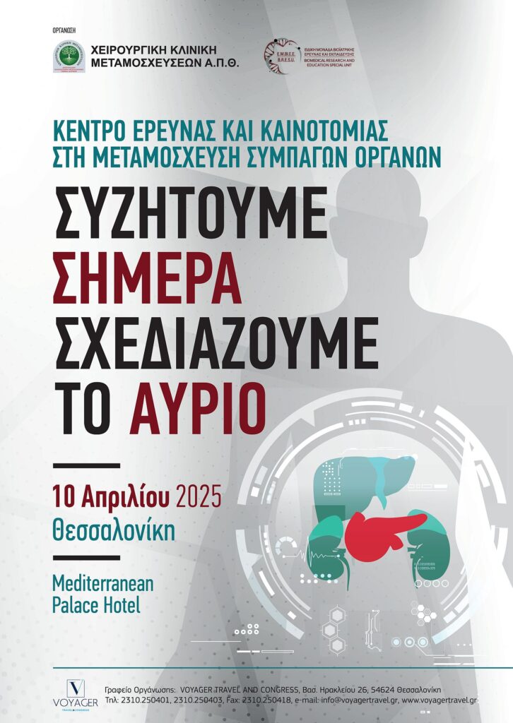Κέντρο Έρευνας και Καινοτομίας στη Μεταμόσχευση Συμπαγών Οργάνων «Συζητούμε σήμερα, Σχεδιάζουμε το αύριο»